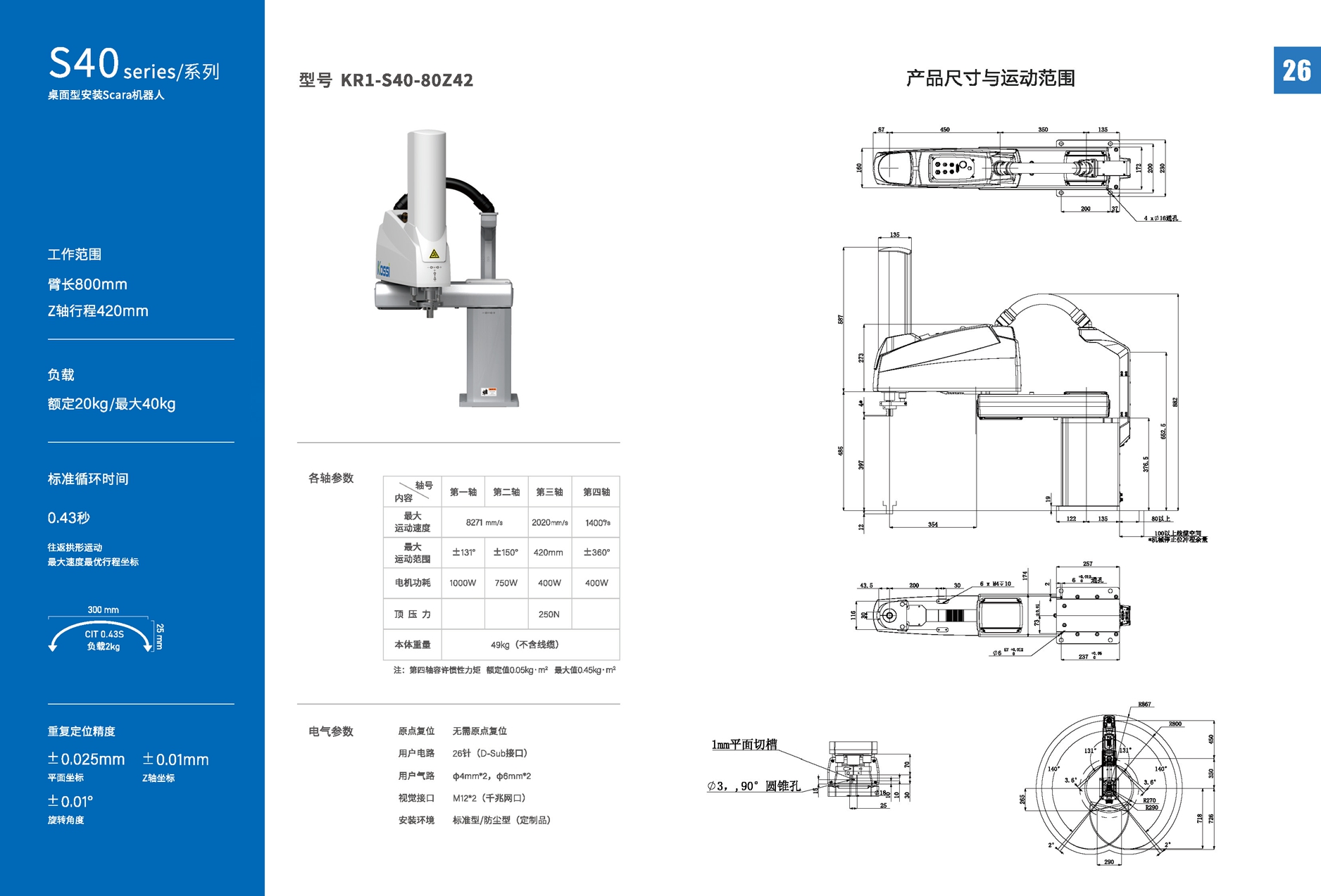 臂展:800mm/900mm/1000mmZ轴行程:420mm